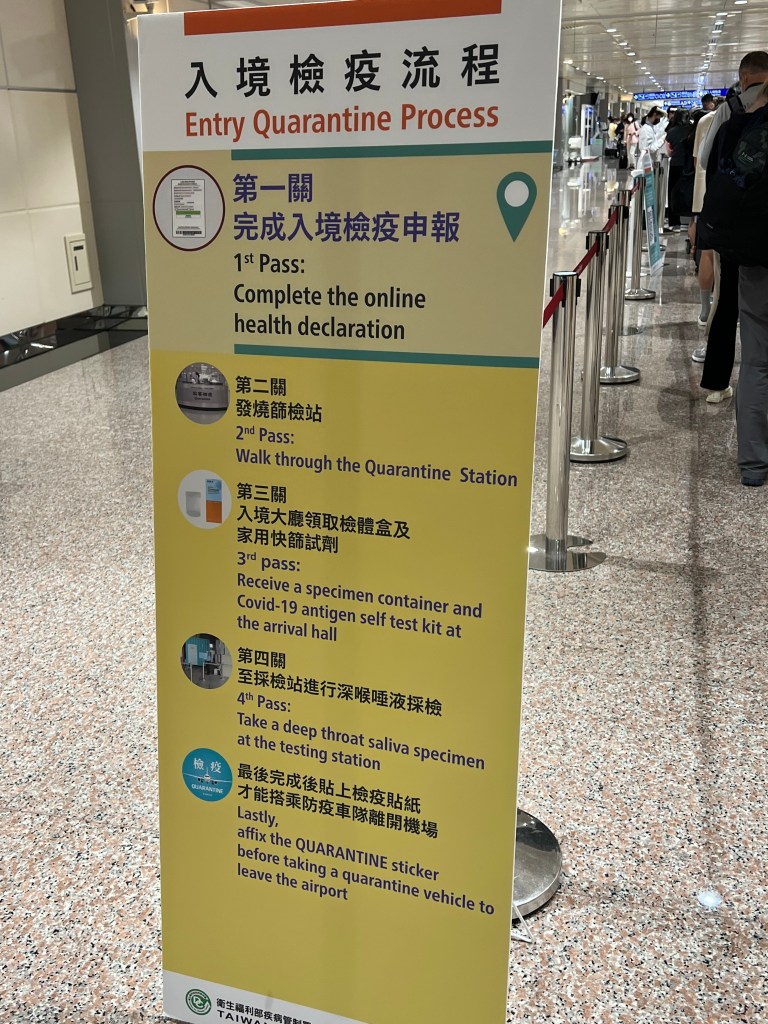 Even with the reclining seats, I only managed an hour or two of sleep, which left me delirious when we finally landed in Taipei. I felt like I had no idea what was going on, probably a combined result of sleep deprivation, COVID regulations, and the fact that I don’t speak Chinese yet. We followed people from our flight and stood in the same lines they were standing in, and found a few signs in both Chinese and English.