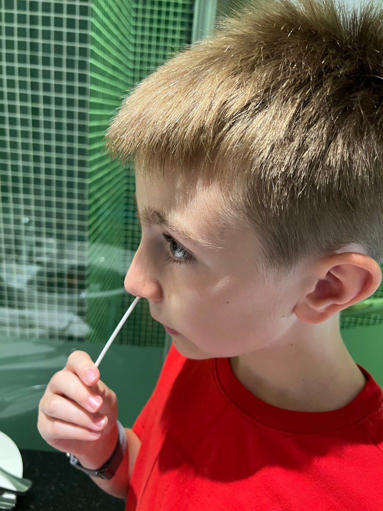 After getting our SIM cards, COVID home tests for quarantine, and getting through customs, we then went outside to makeshift stalls along the sidewalk adjacent to the airport so we could do a saliva COVID test…so we filled four jars with spit…