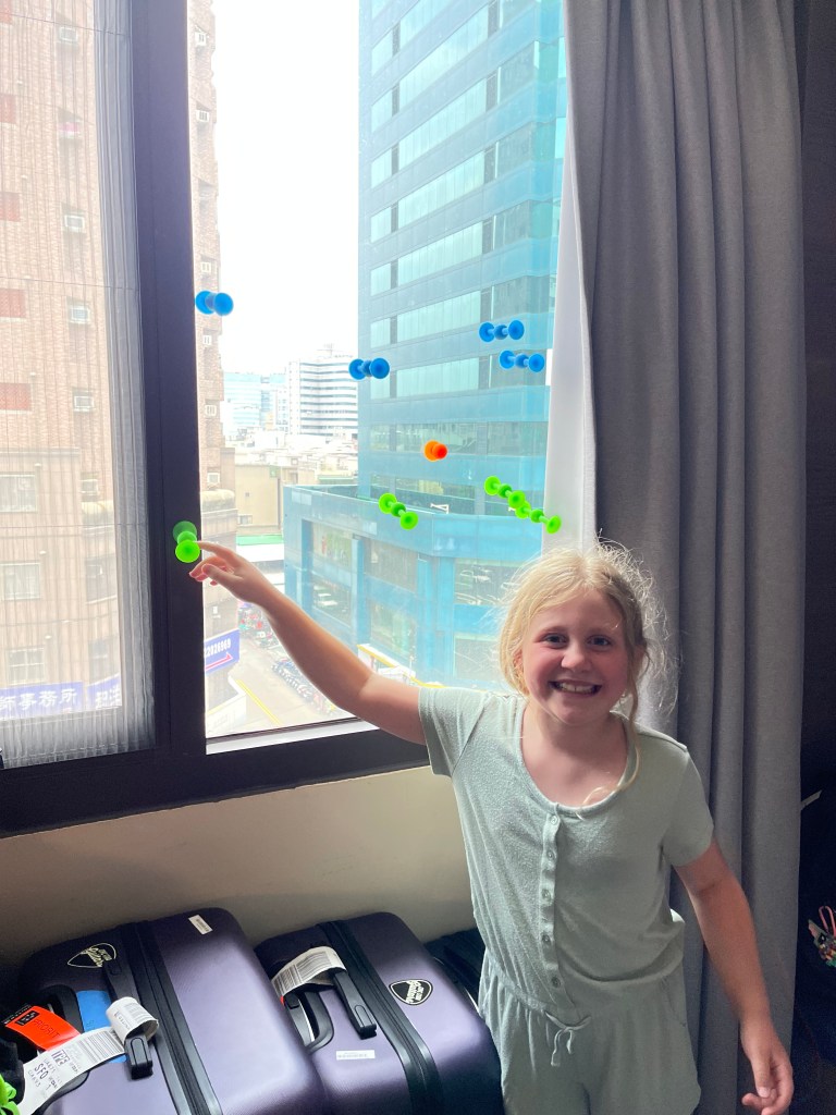 We also brought our own entertainment. Each room had half of a window dart game, TJ and I hooked up our Nintendo Switch, and KJ brought room decorations and her favorite doll.