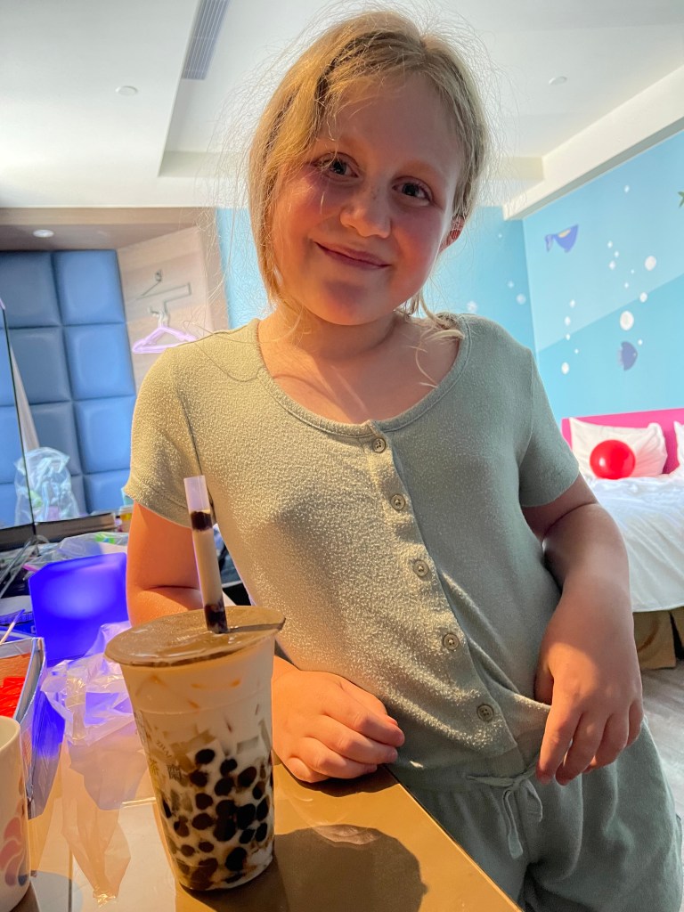 TJ and I found a coffee shop called Louisa, and found some panini-like food we loved and I figured out how to order a caramel macchiato. KJ and mom realized we were in the home of Din Tai Feng,and ordered themselves a feast of soup dumplings. Also, KJ tried her first bubble tea, or “boba” tea, first created right here in Taichung!